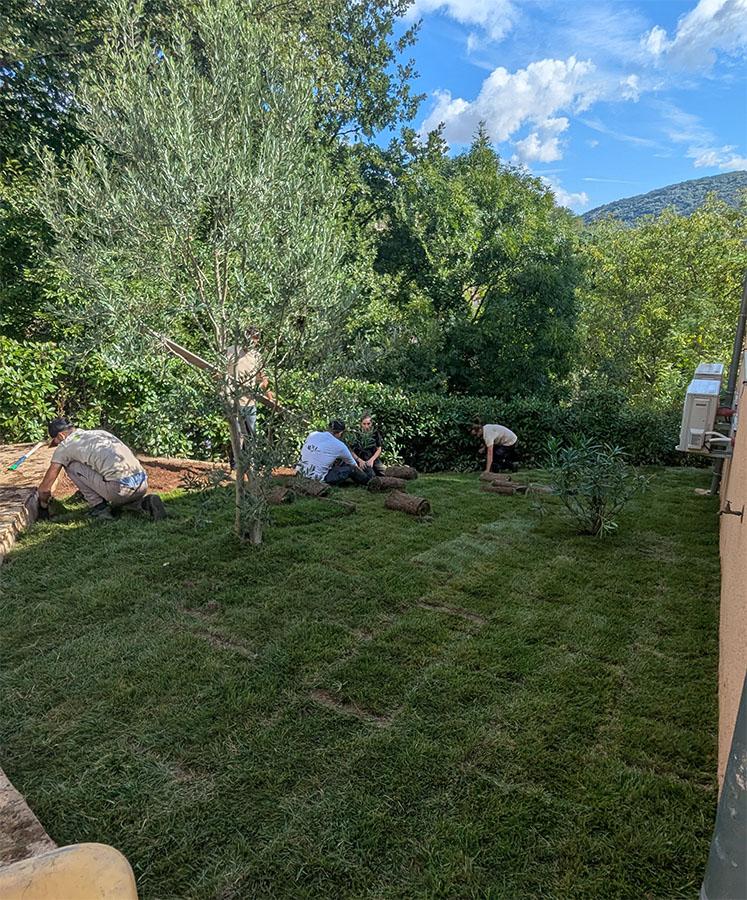 Nos équipes réalisent la création de surfaces engazonnées en semis ou en gazon de placage pour un rendu esthétique et durable. Nous assurons aussi la plantation d’arbres, d’arbustes et de plantes fleuries, annuelles ou vivaces, afin de donner vie et couleur à votre jardin.