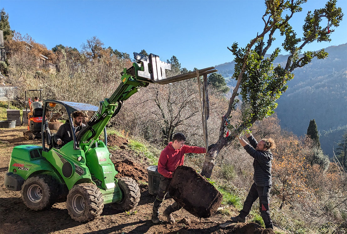 La plantation de grands sujets permet d’apporter immédiatement du volume, de l’ombre et du caractère au jardin. Cette intervention technique nécessite des engins adaptés et un savoir-faire précis pour garantir une reprise optimale.